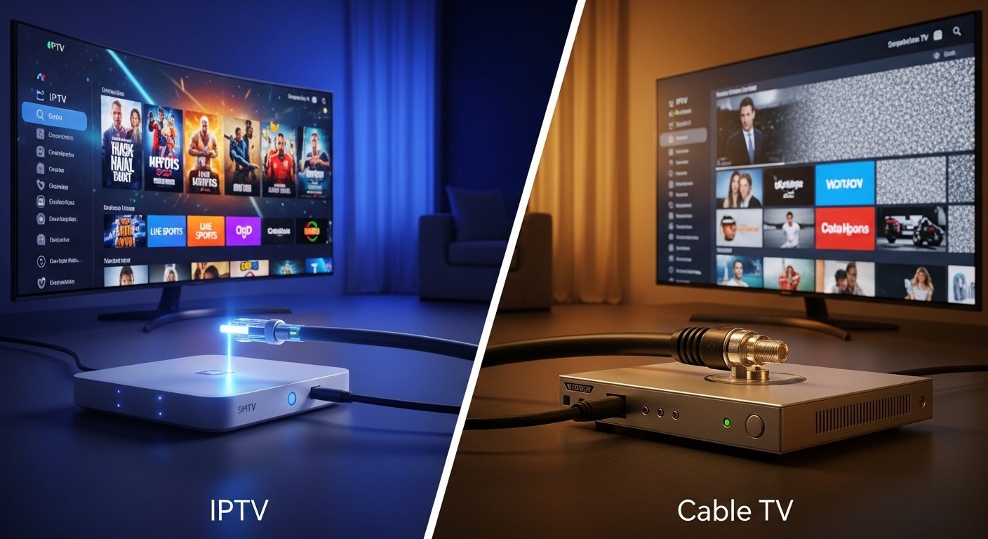 Το IPTV χρησιμοποιεί πρωτόκολλο internet για μετάδοση, ενώ η καλωδιακή τηλεόραση βασίζεται σε υποδομή ομοαξονικού καλωδίου που συνδέεται απευθείας στα σπίτια.